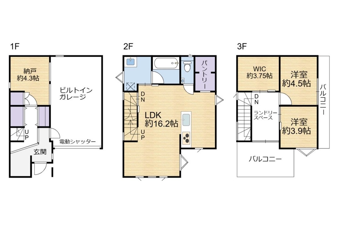 〇3階ランドリースペース完備!乾いた洗濯物を直接WICへしまえて家事効率の良い設計
