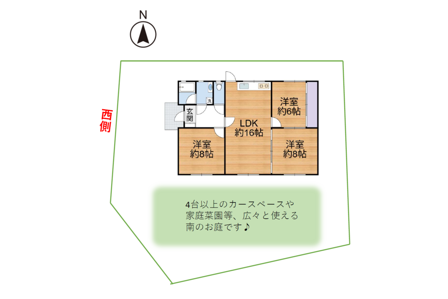 〇駐車4台以上可能な広々スペース!愛車を複数台並べたり洗車もしやすい広さ