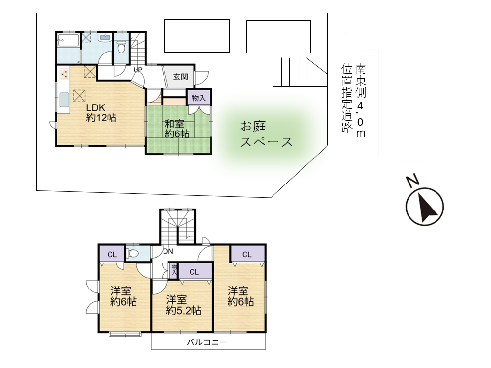 | 接道状況 | 南東側約4m私道(位置指定) | 延床面積 | 1F:48.85㎡ 2F:42.64㎡ 合計:91.49㎡(登記簿) |