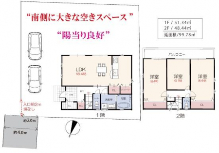 | 採光面 | 東南 | 構造/階数 | 木造/地上2階建 |