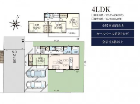 | 築年月 | 2026年6月築 | 間取り | 3SLDK (LDK17/洋室9.75/洋室6/洋室5.25) | ||