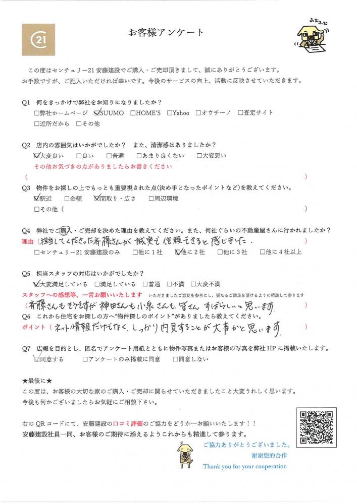 □担当してくださった斎藤さんが誠実で信頼できると感じました。