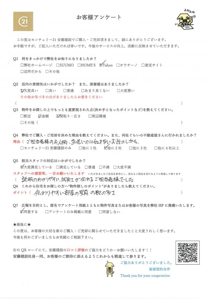 この度は弊社でのご成約、誠にありがとうございました。また、貴重なご感想も重ねて御礼申し上げます。