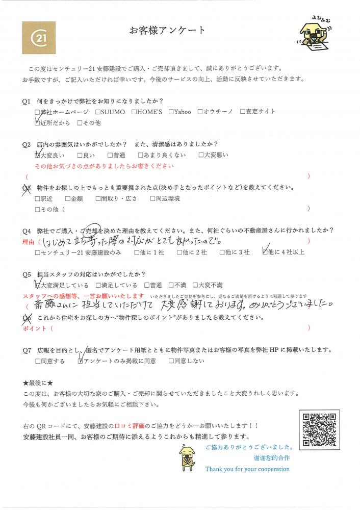 □斎藤さんに担当していただけて大変感謝しております。ありがとうございました。