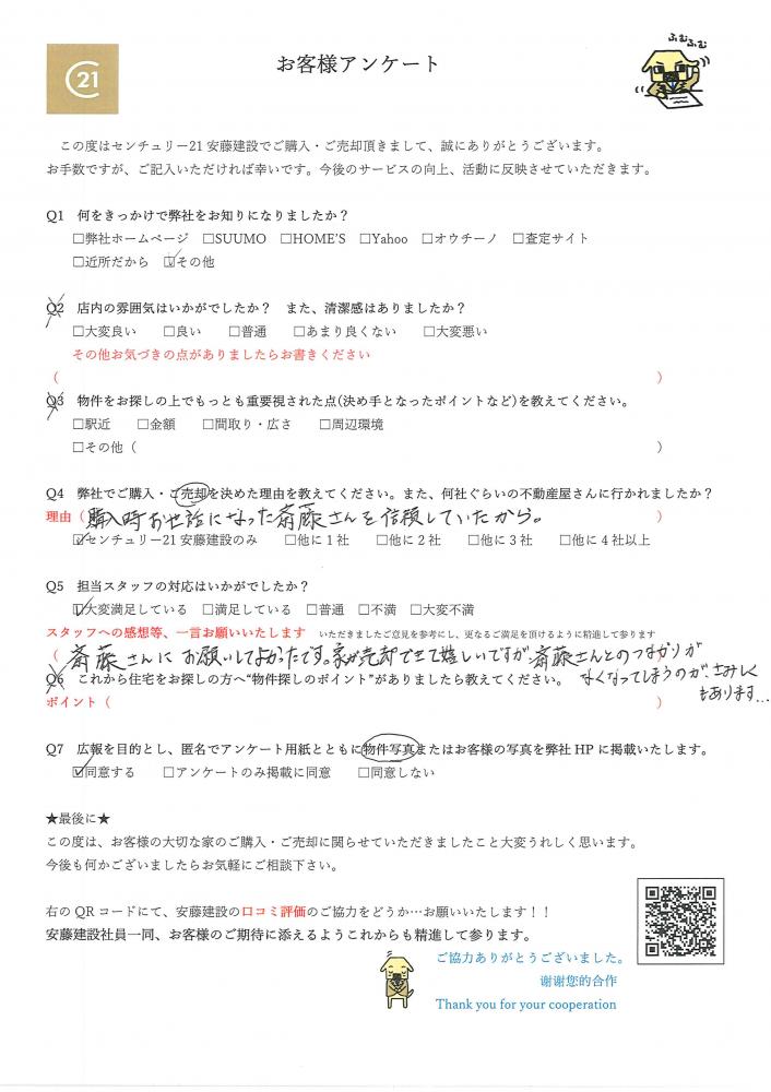 □斎藤さんにお願いしてよかったです。家が売却できて嬉しいですが、斎藤さんとのつながりがなくなってしまうのがさみしくもあります…